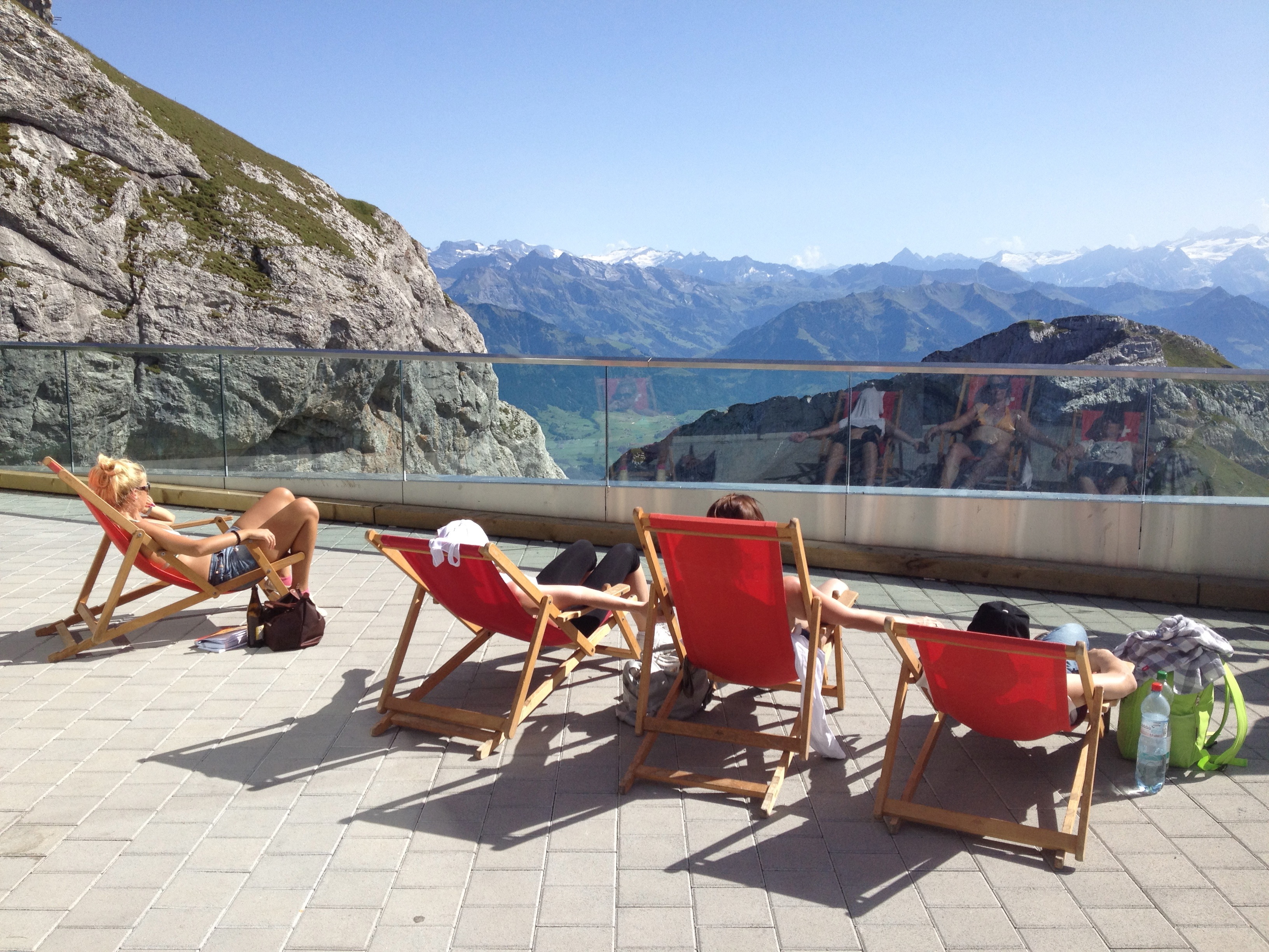 - Swiss people sunbathe on mountaintops