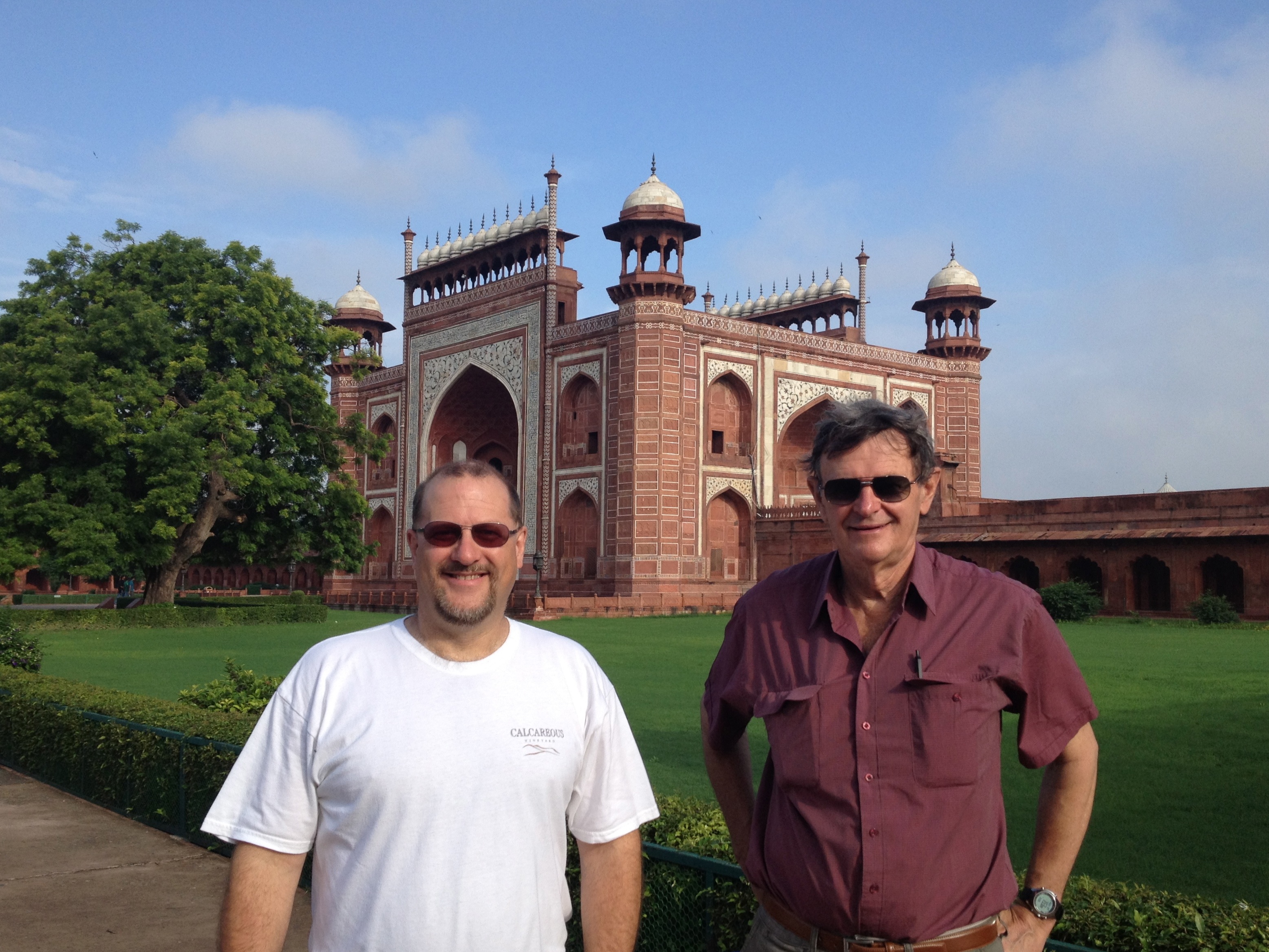 Two intrepid pilots in front of the Taj entrance building Published August 28, 2012 at 3113 × 2335 in Rest Day in Agra: Taj Mahal