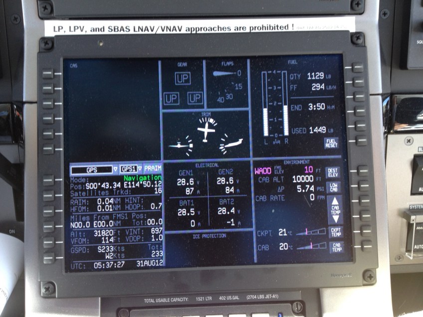 Just after passing over the equator – Finally an “S” not an “N” on the GPS display Published September 1, 2012 at 3264 × 2448 in Ferry Flight 7: Vietnam to Bali
