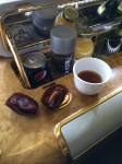 One nice ritual on Emirates is Arabic Coffee and Dates, served before takeoff. You need to consume them together to get the right effect – with the sweetness of the date balancing the astringency of the coffee. Yes thanks, I’ll have another.
