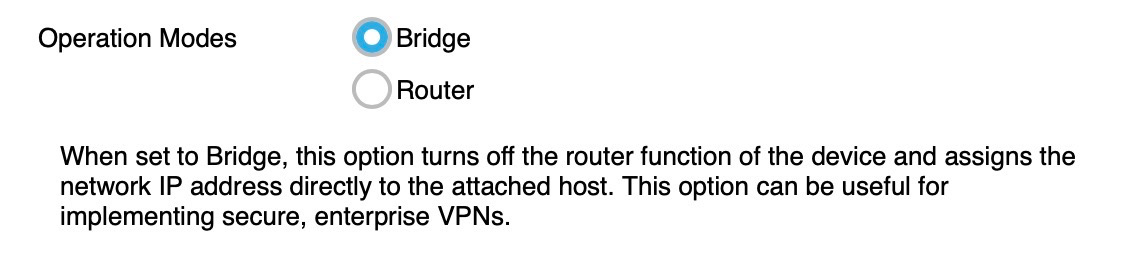 Then I simply switched the unit from router mode to ‘bridge’ mode. This is the key to a very simple life!