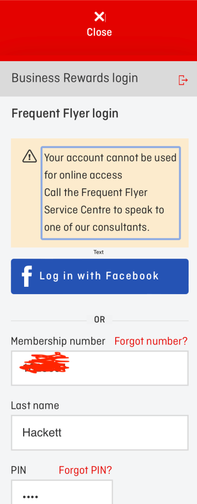 Yes, that’s right. Sometime in the last few days, something in the Qantas IT system now broke my ability to log in online at all.