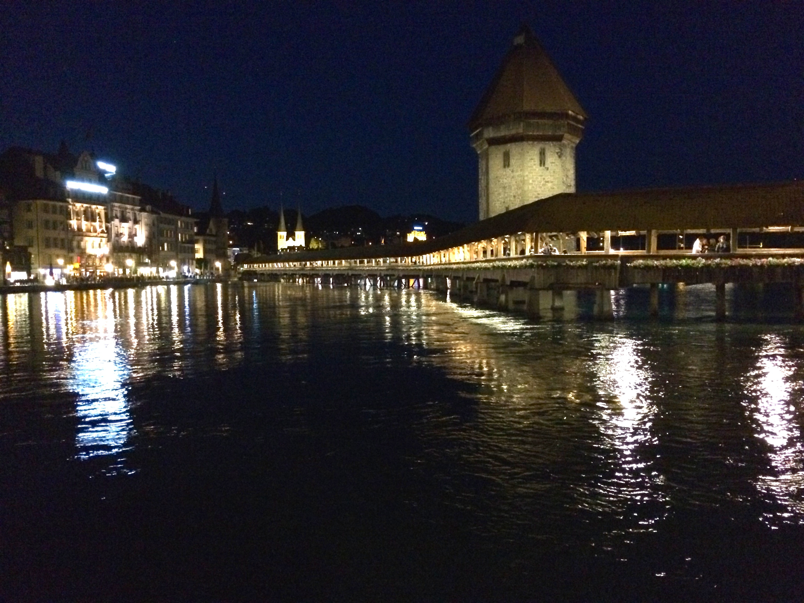 This is the old covered bridge in Lucerne, Switzerland.