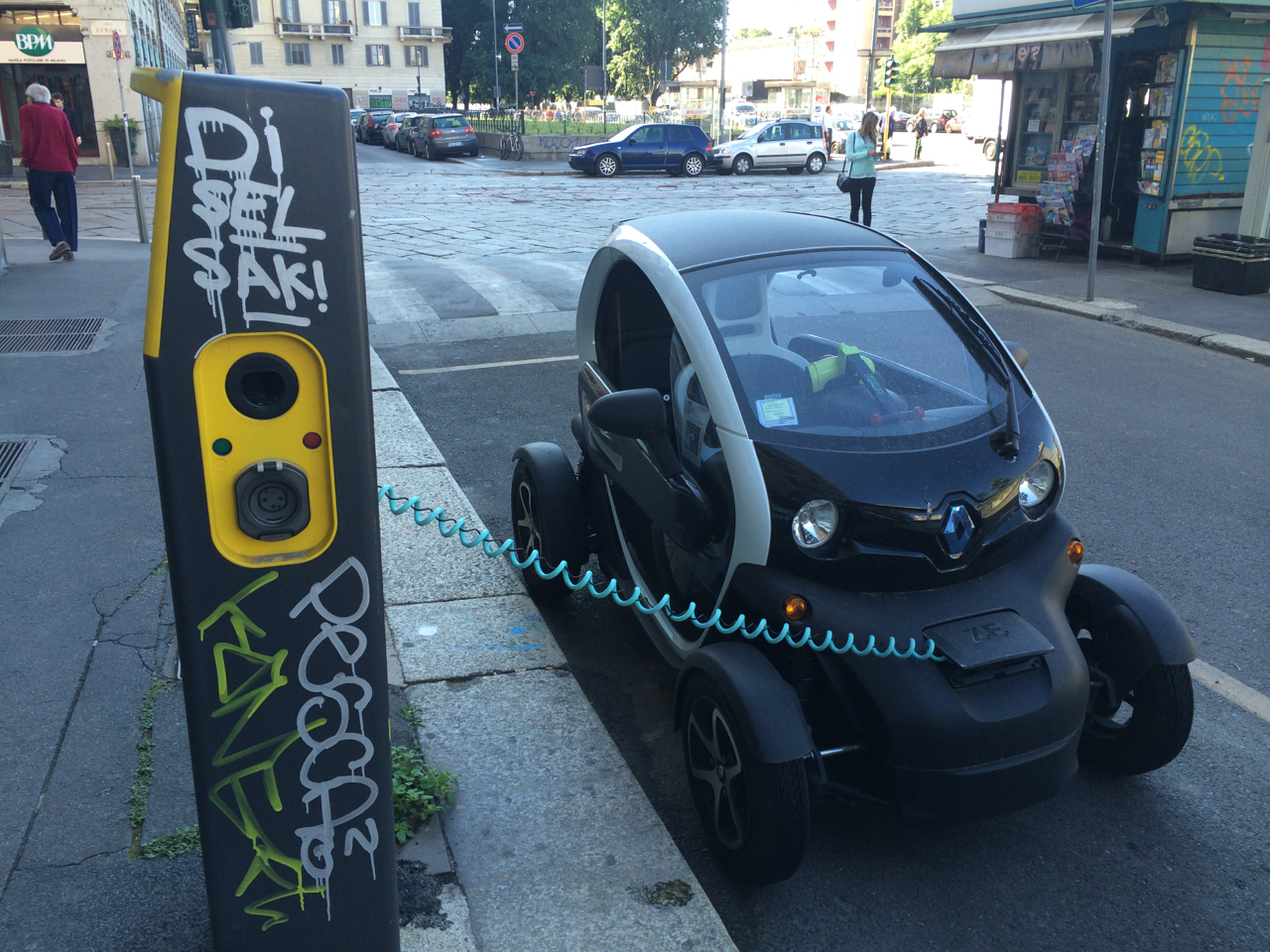 IMG_1045 Published May 25, 2014 at 1280 × 960 in IMG_1045 A Renault Twizy recharging from the graffiti pole