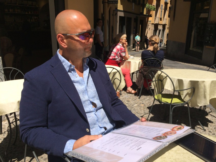 Sebastian deciding which Pizza to order