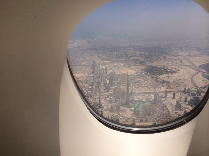 I took around 50 shots as my plane took off from Dubai airport and climbed around the city. This was the best of them, with many of them not coming out very well at all for a variety of reasons (including the camera tending focus on the window of the aircraft).